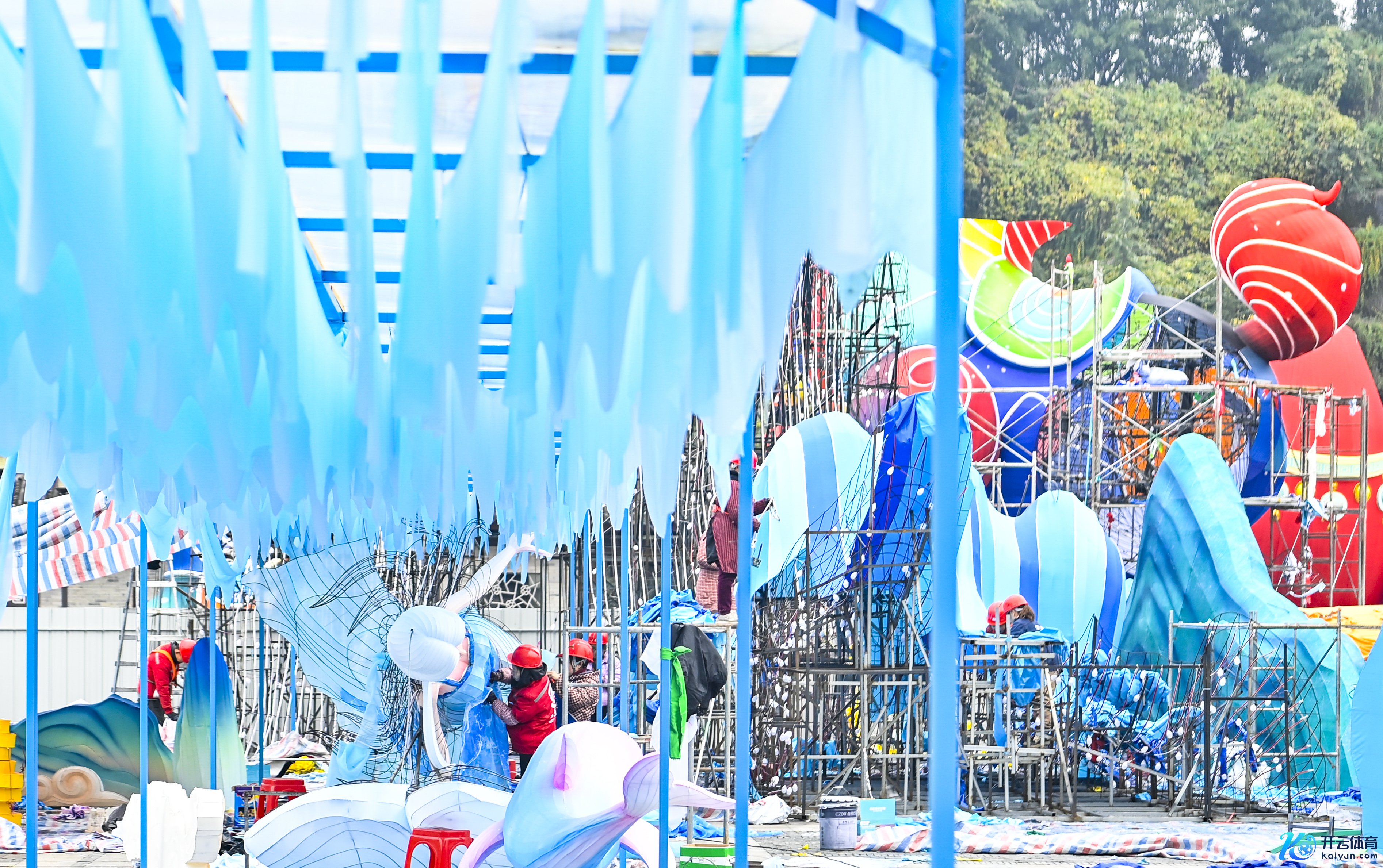 ▲2026年1月5日,两江新区,2026年重庆市新春灯会——“禧欢霓”园博园大型水上灯会建立现场。记者 王人岚森 摄