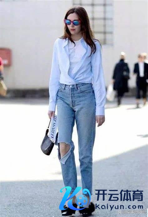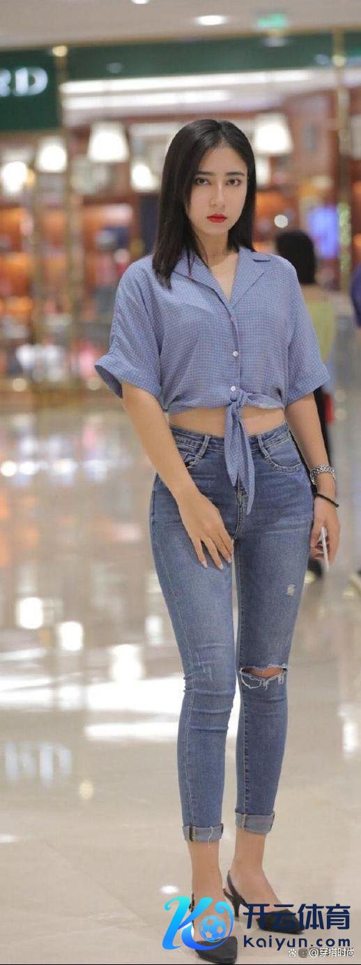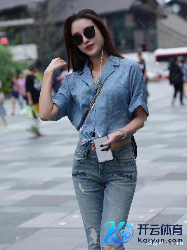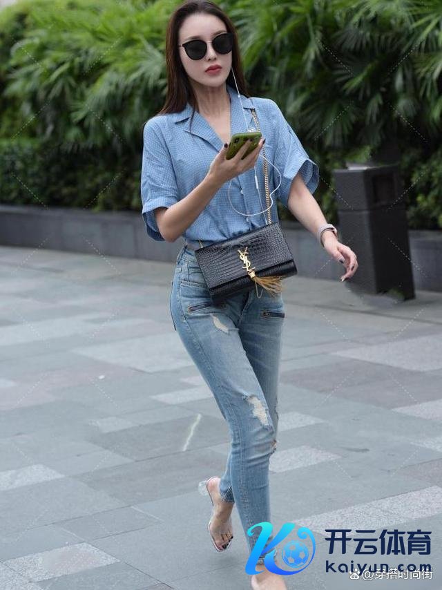 而与这件蓝色小波点衬衫长短分明的,莫过于一条淡色牛仔长裤。牛仔,四肢先锋界的常青树,它以其独到的质感与百搭性,成为了多量先锋达东说念主的心头好。淡色系的牛仔长裤,相较于深色系而言,愈加超世绝伦,大约很好地提亮举座造型,给东说念主一种斥责愉悦的视觉感受。裤腿的剪裁开通当然,既保留了牛仔的硬朗线条,又不失女性的柔好意思与温婉。这么的经营,使得腿部线条在视觉上取得拉长,即即是最从简的搭配,也能斥责打造出高挑修长的躯壳比例。