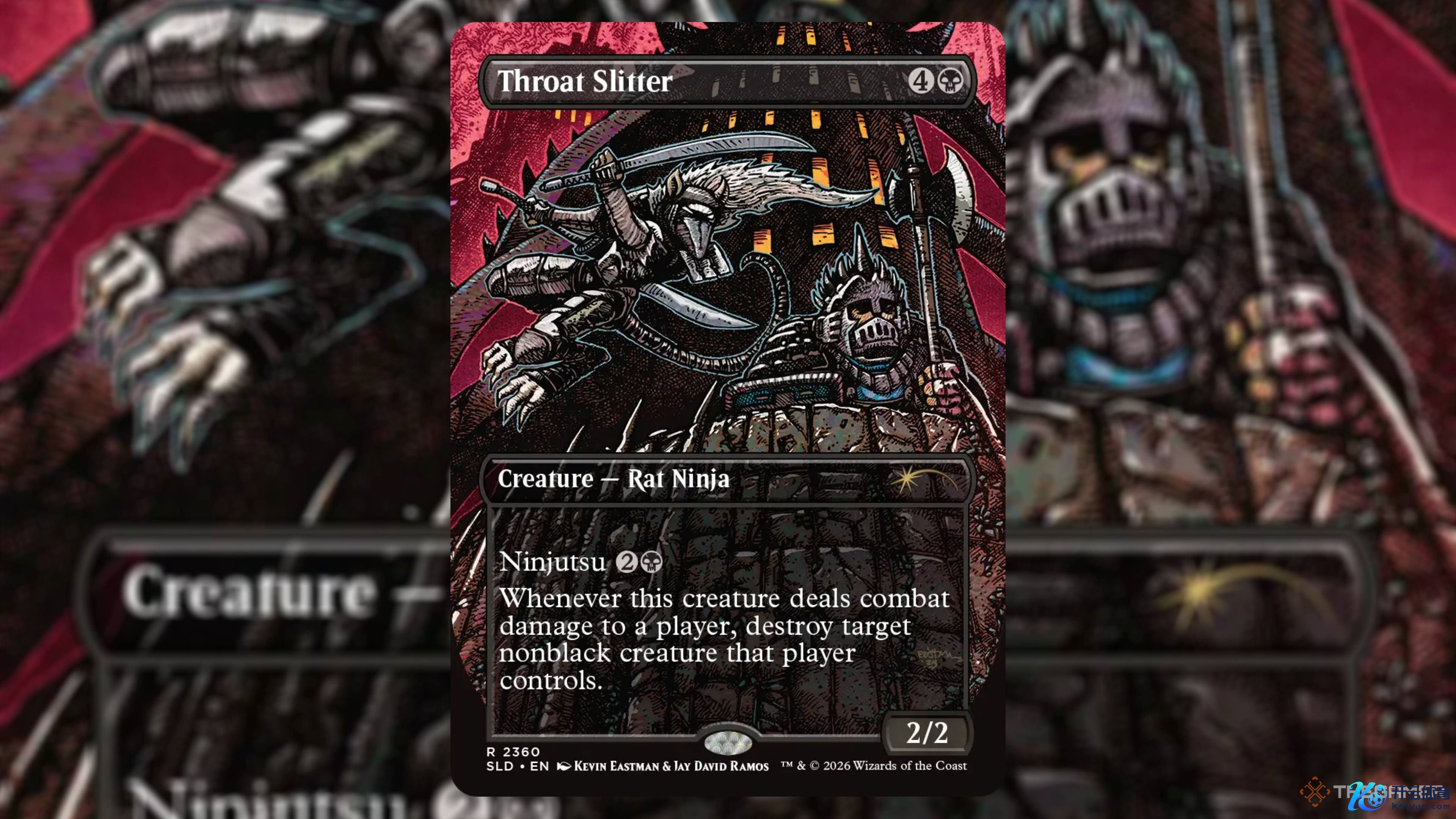 诚然蝠鲼可能是我最心爱的单卡,但忍者神龟 Secret Lair 中我最心爱的套装奖项要颁给 The Last Ronin(临了浪东谈主)。这一双该系列天地的特有阐扬尽头精彩,很鼎沸看到它通过这五张卡牌被无缺捕捉。打行为风看起来像阴雨、写实的漫画封面,斯普林特真挚挥舞武士刀的样子从未如斯帅气。