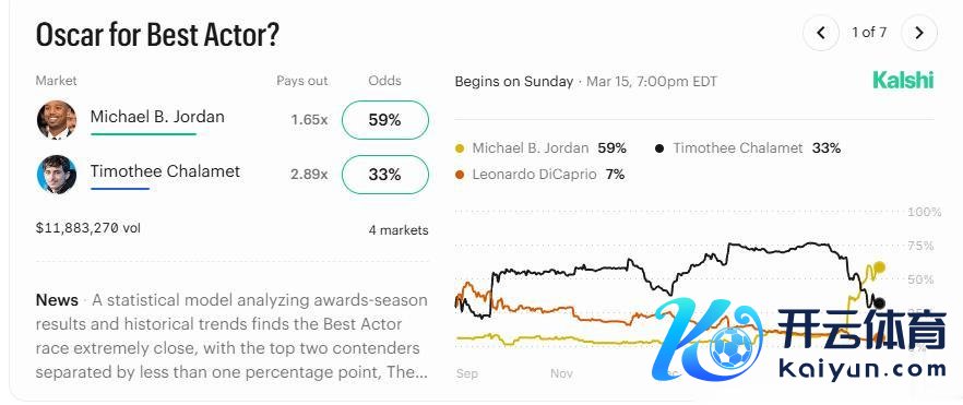 直到两周前,提莫西·查拉梅(甜茶)照旧本届奥斯卡最好男主角的统统热点东谈主选。但是,跟着迈克尔·B·乔丹不测斩获好意思国演职工会奖影帝,这盘大棋驱动风浪突变。在瞻望平台Kalshi上,查拉梅的合约价钱片刻从68好意思分暴跌至51好意思分。天然他依然拼凑保管着幽微的当先上风,但更大的风暴还在背面。